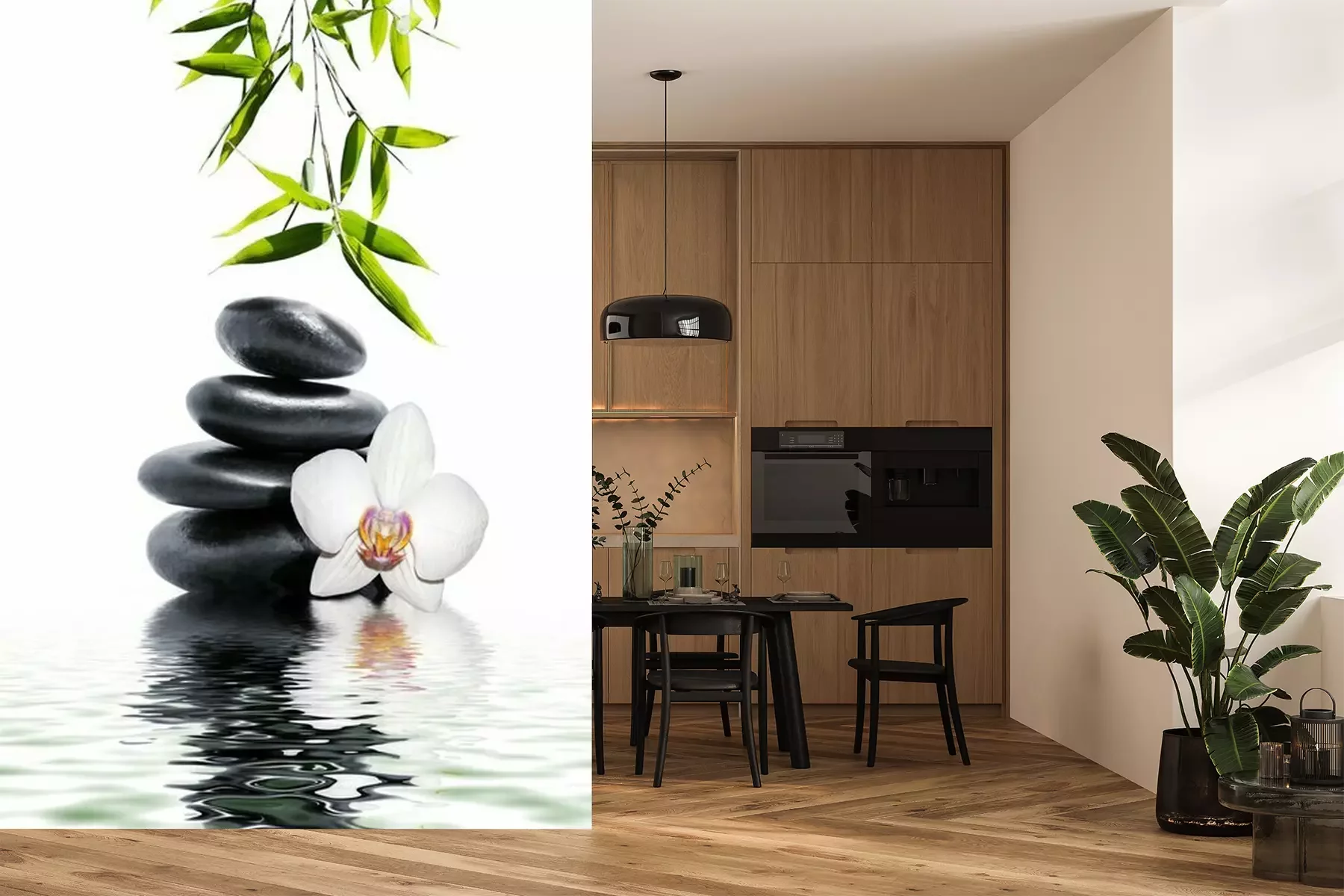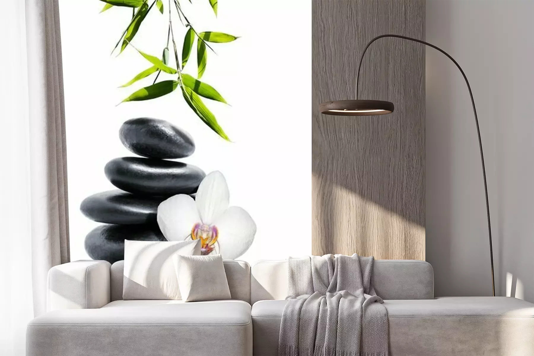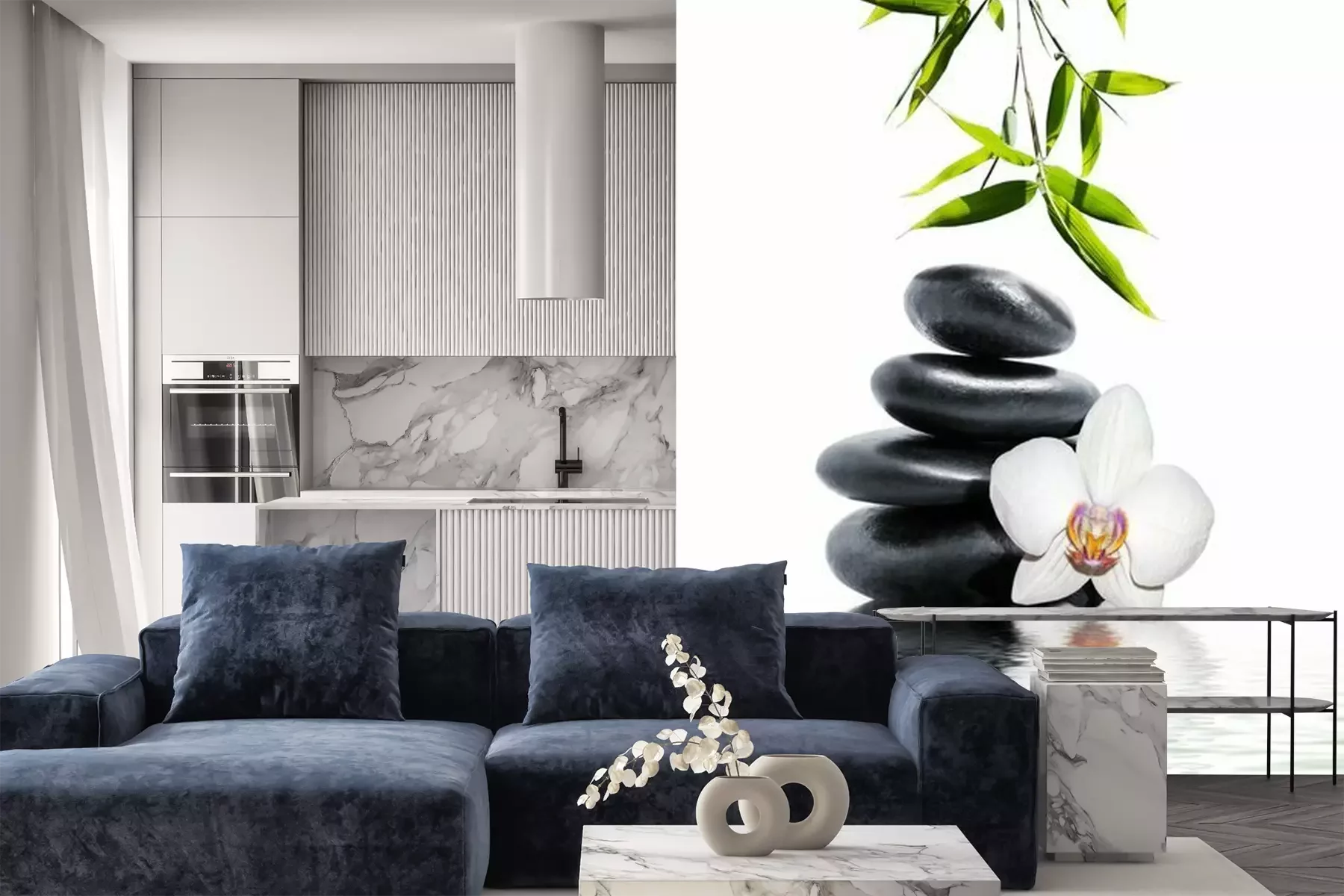 Orchidee samenstelling van stenen en bamboeFotobehang