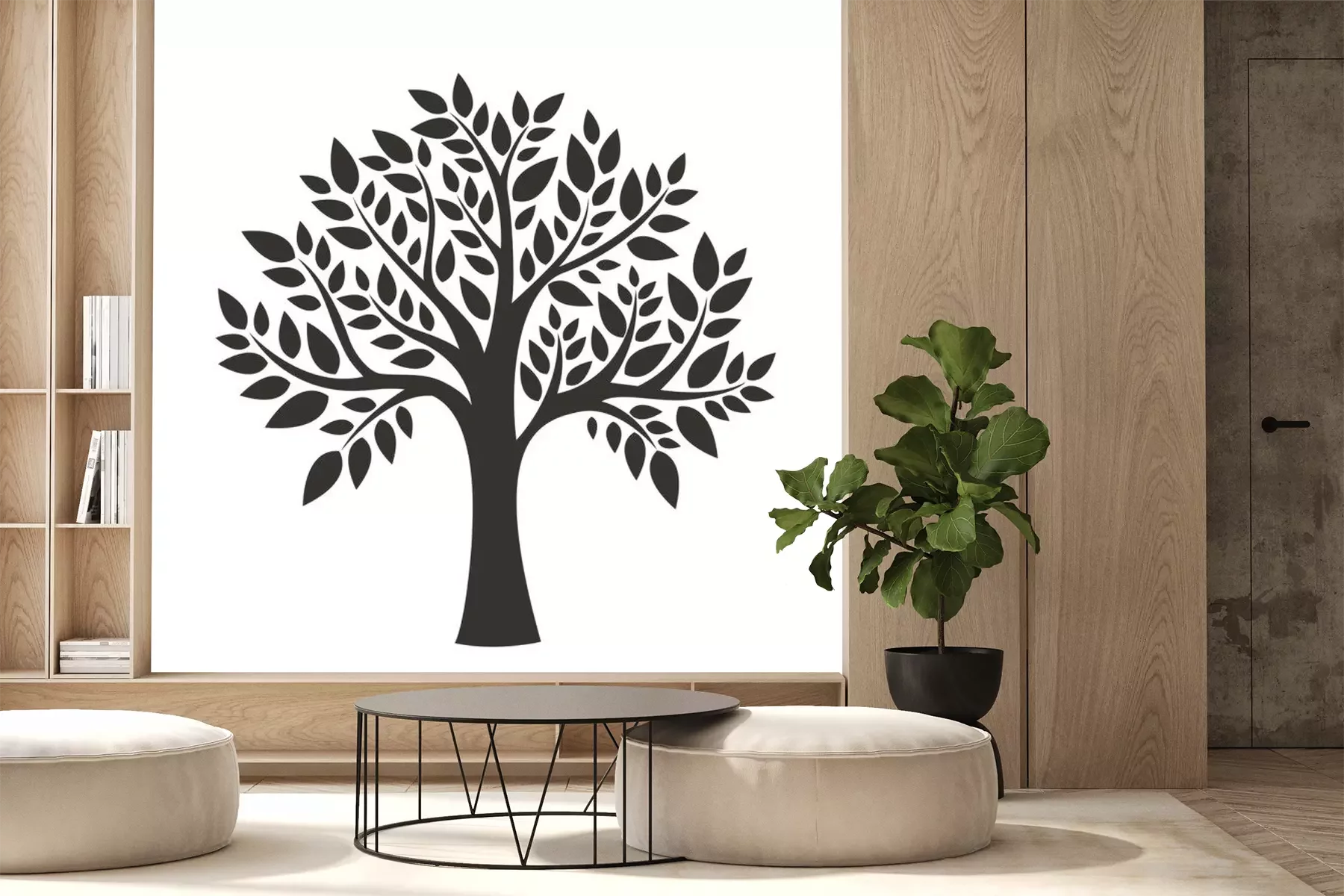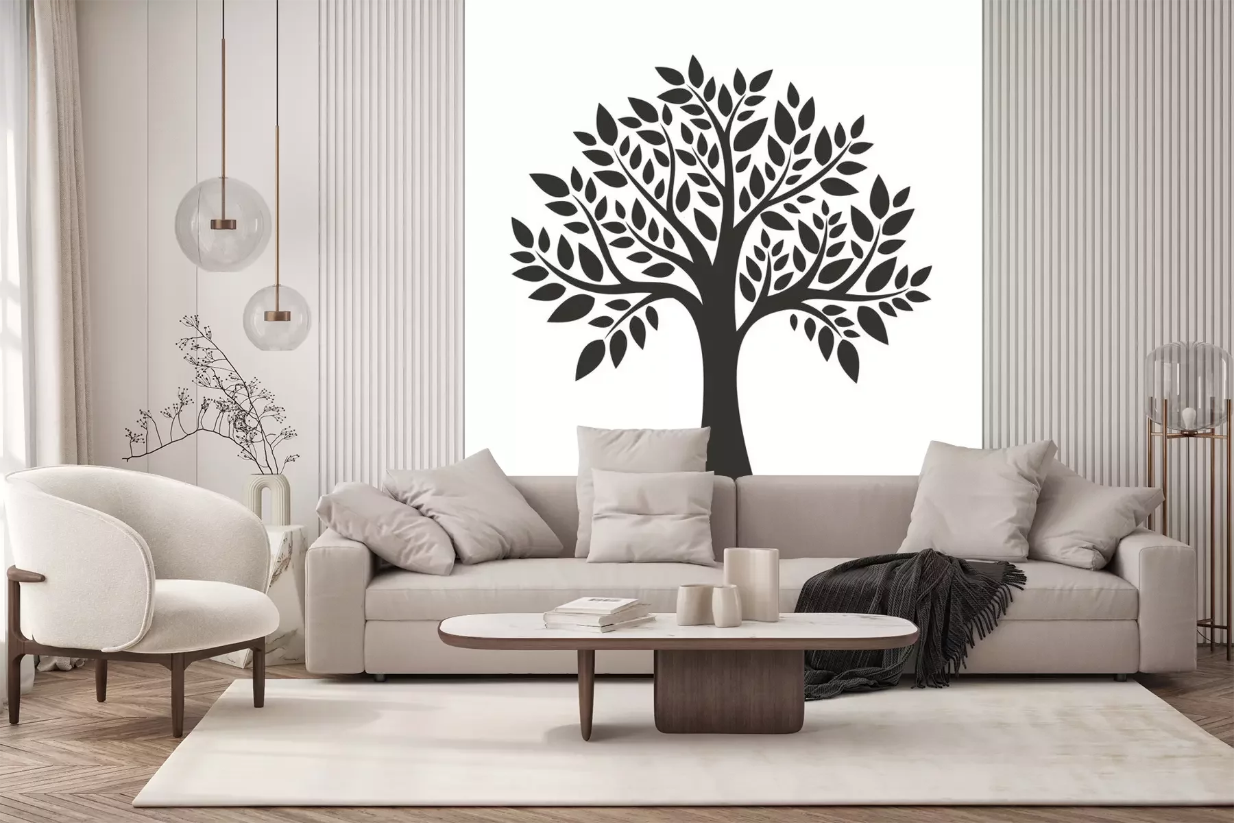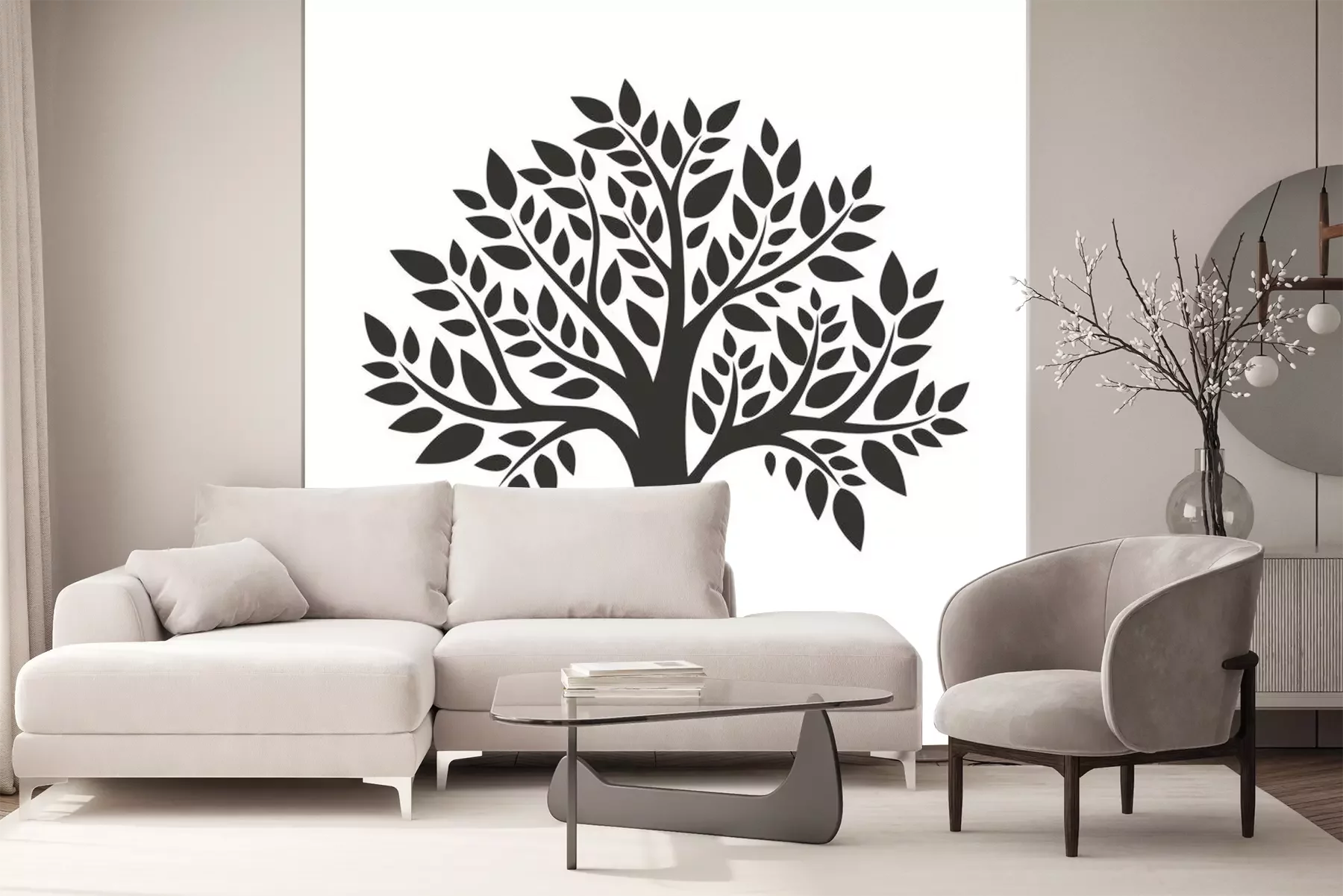 Sticker Zwart-wit tekening van een bladverliezende boom