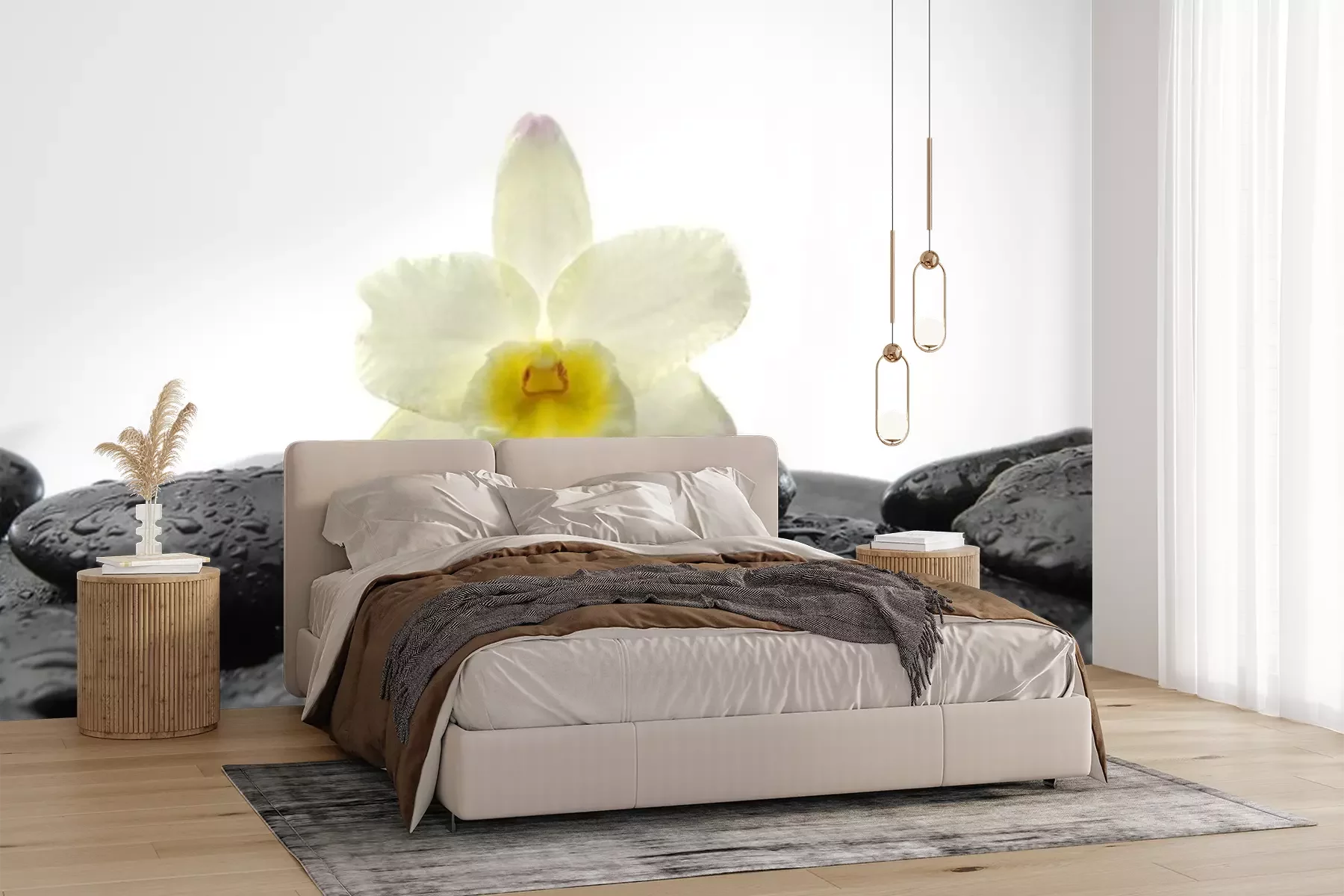 zwarte stenen en roze orchideeProbleemloze bezorging verzorgd door vertrouwde vervoerders