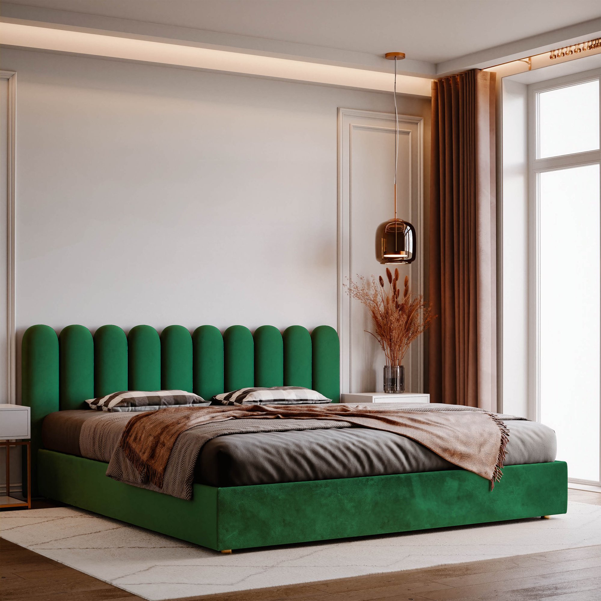 *Korting is niet van toepassing op lijmen, accessoires en cadeaubonnen.In ons assortiment vind je panelen in verschillende vormen – vierkanten, rechthoeken, hexagonen en originele hekje-vormen – verkrijgbaar in diverse afmetingen en een breed scala aan kleuren. Elk paneel bestaat uit drie lagen: een stevige spaanplaat, anti-allergisch schuimrubber en een fluwelen bekleding. De stof is bestand tegen pluizen en slijtage en neemt geen vloeistoffen op, waardoor ze eenvoudig schoon te houden is. De panelen zijn gemakkelijk te monteren – met behulp van zelfklevende klittenbandstrips creëer je in een handomdraai een stijlvol hoofdbord in de slaapkamer, een knus hoekje in de kinderkamer of een decoratieve wand in de woonkamer.